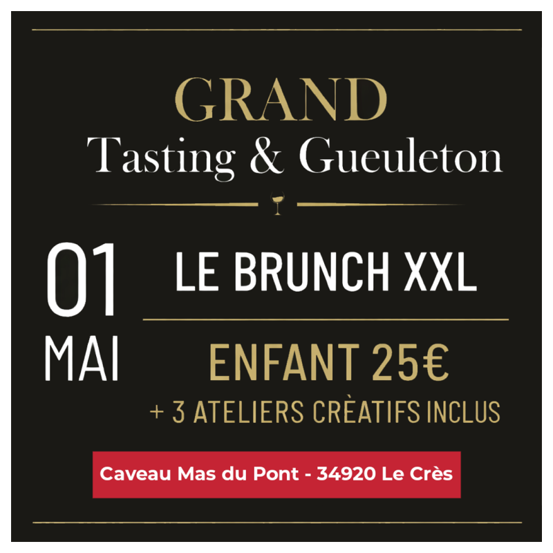 Rendez-vous à la cave du MAS du Pont au Crès le vendredi 1er mai 2026. Le Brunch XXL avec plus de 100 cuvées d'exception à déguster !